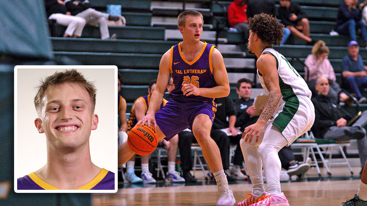 Don’t let his size fool you: 5-foot-10 Tony Angelo is a big-time player. Relieving senior starter Ze’ev Remer at point guard for stretches at a time, the sophomore from Vancouver, Washington, is shooting over 50% from beyond the arc and regularly putting his teammates in a prime position to score. “He’s taking care of the ball at an elite level,” head coach Russell White said. “His assist-to-turnover ratio is like 4-to-1.” Angelo, already Cal Lutheran’s best on-ball defender, knows how to win: He led Portland’s Central Catholic High School to a state title in 2024.
