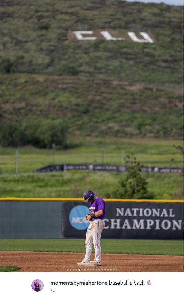 Photographer Mia Bertone (@momentsbymiabertone) celebrated the highly anticipated return of Kingsmen baseball with this perfectly framed shot of superstar outfielder Lucas Danielewicz during the team’s alumni game on Saturday, Jan. 24, at George “Sparky” Anderson Field. The purple and gold open the regular season at home against Top 25 McMurry University (Texas) in a three-game series starting Feb. 6. |