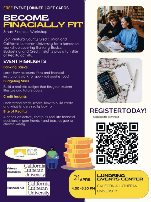 4:00 pm - 5:30 pm Lundring Events Center Become financially fit at this free Smart Finances Workshop hosted by Ventura County Credit Union and Cal Lutheran!