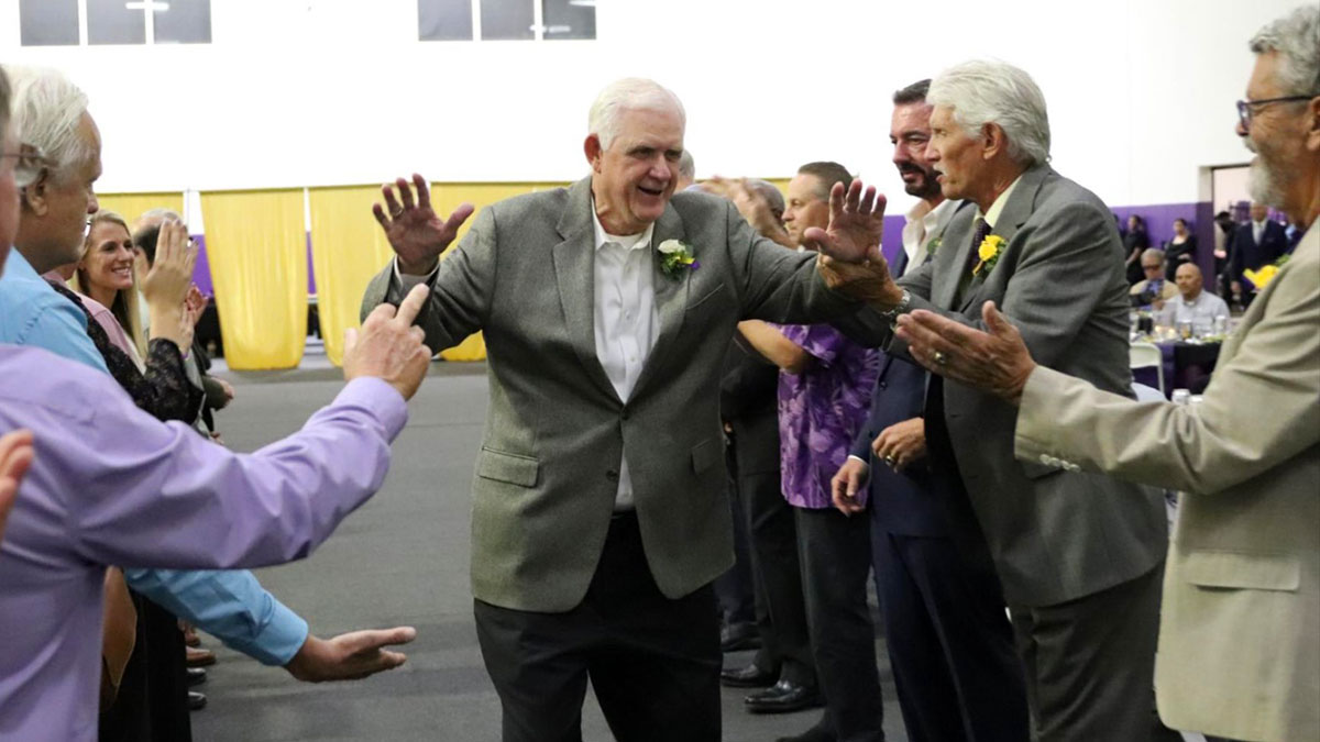 His eyes welling with pride, Butch Eskridge raised his arm and pointed into the sea of people inside Soiland Multipurpose Arena. “I’m so proud to be up here, but I’ve got to say, the people at that table, they are my legacy,” said Eskridge, a 1977 graduate and member of Cal Lutheran’s Hall of Fame Class of 2025. Thirteen family members ― including Eskridge’s four children and seven grandchildren ― made the 1,500-mile trek from Texas to Thousand Oaks to attend the Oct. 17 induction ceremony.