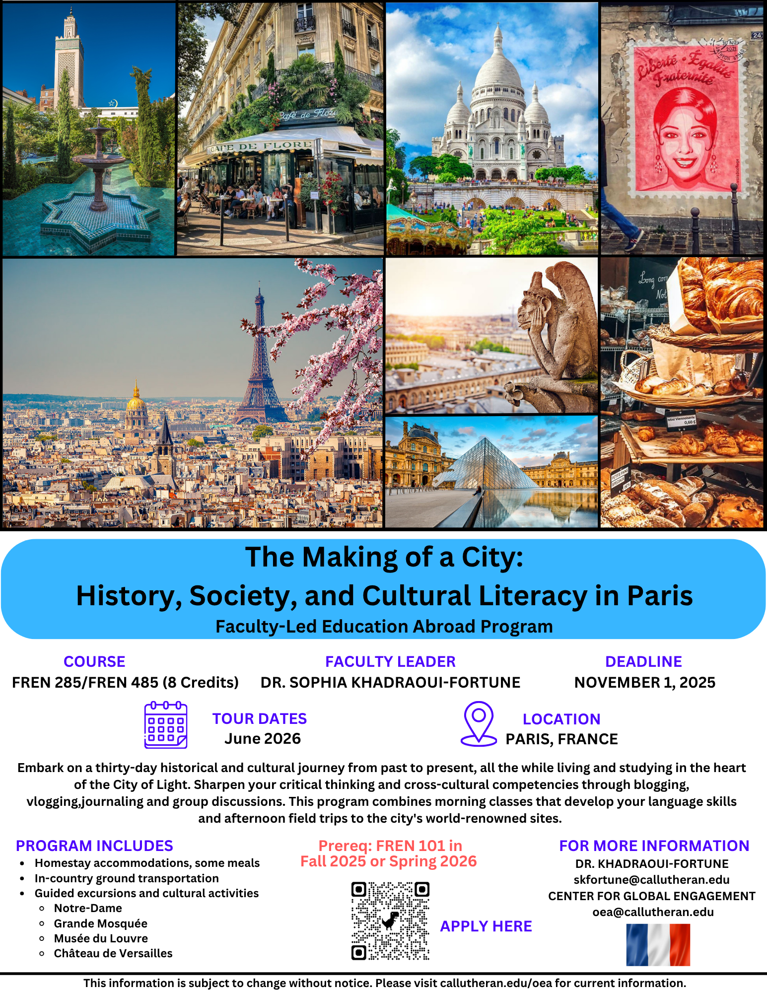 When - June 2026 Deadline - November 01, 2025 Spend a month in Paris next summer and earn 8 credits while exploring one of the world’s most iconic cities.